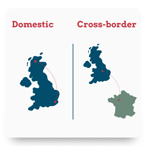 When selling online, your sales might be categorised as either domestic or cross-border. When we talk about domestic sales, we are referring to sales made within the same country, e.g. a UK business selling online to UK customers with goods based in the UK. When we refer to cross-border sales or international sales, we are referring to sales made to or from a country where you are not established or your goods are not based, e.g. a UK business selling goods to a customer based in France.