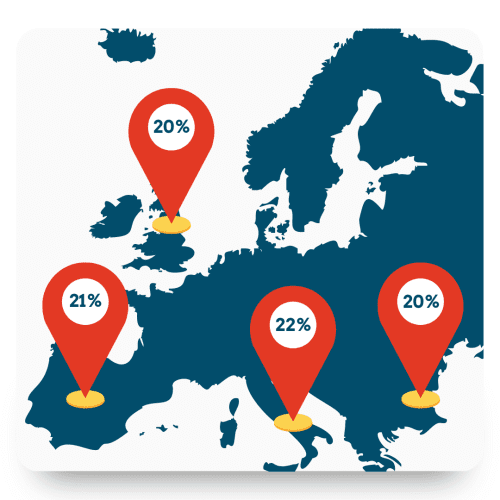 VAT rates vary across the EU, ranging from 17-27%, so staying up to date and aware of the VAT rates is critical to protecting your margins. Want to learn more about VAT in the EU? Visit our EU VAT Numbers 101 to learn everything you need to know about EU VAT.